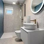 يمكنك الاستمتاع بإطلالة على الفناء من الفيلا. تشتمل مرافق الحمام أيضًا على حوض استحمام سبا ومقصورة الدوش والمرحاض المنفصل. كما يتمّ توفير مجفف الشعر وملاءات الحمام والمناشف تحت تصرفك.